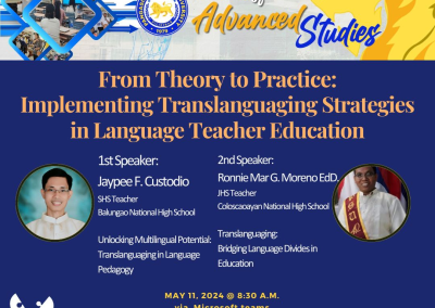 ✔️ Special Focus on Bilingual and Multicultural Education – Our curriculum integrates theories and practices that address multilingual realities in the Philippines and beyond.